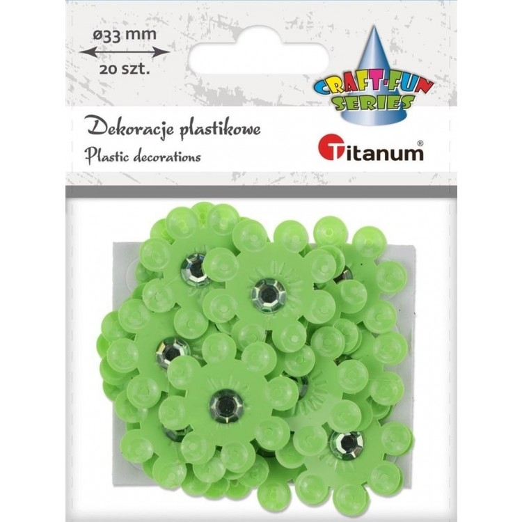 Dekoracija Gėlės, (plastikas), lipnios, žalios, 20vnt.x33mm, TITANUM