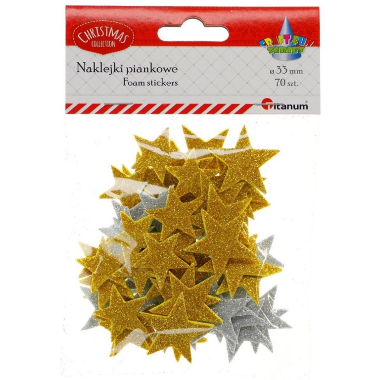 Dekoracija iš putgumės "Lipnios žvaigždės" 70vnt. 33mm aukso ir sidabro sp. TITANUM