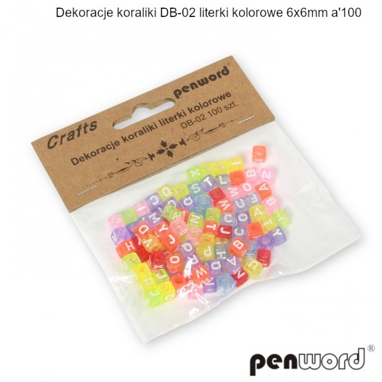 Dekoracija karoliukai Raidės, įv.sp. 6x6mm, 100 vnt. DB-02 PENWORD