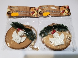 Dekoracija medinė riekė su angeliuku, tinka kalėdoms papuošti.