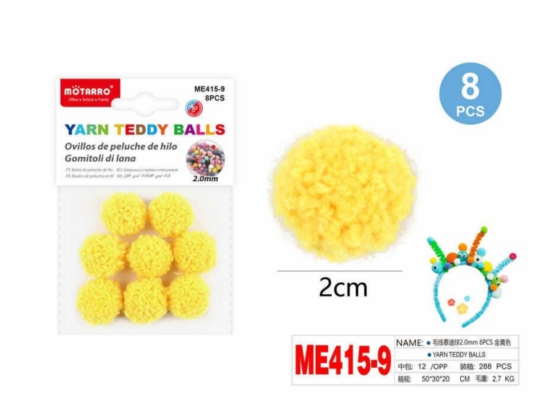 Dekoracija pomponai 20mm 8vnt geltonos sp MOTARRO