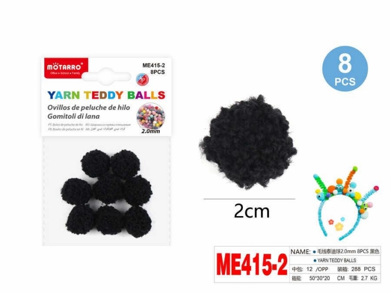 Dekoracija pomponai 20mm 8vnt juodos sp MOTARRO