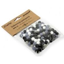 Dekoracija pomponai BALTI/PILKI/JUODI MIX 120vnt.1cm, PENWORD