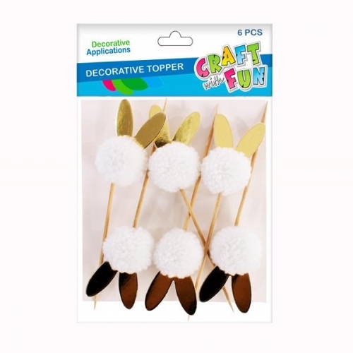 Dekoracija "Pomponai Kiškučiai ant pagaliuko" 6 vnt. CRAFT-FUN