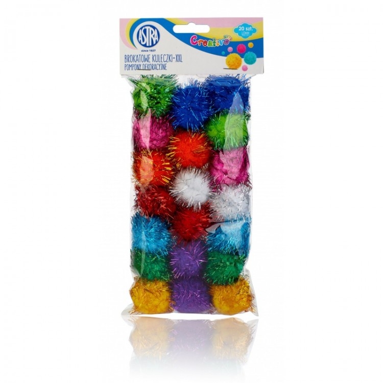 Dekoracija pomponai su blizgučiais 40mm 20vnt. ASTRA