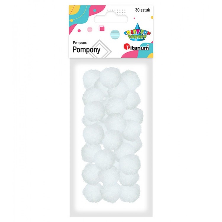 Dekoracija pomponai žaislams daryti 30vnt., balti 2,5cm TITANUM