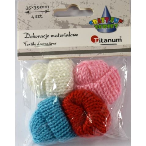 Dekoracija rankdarbiams "Megztos kepuraitės" 35 x 35 mm, 4 vnt. mix spalvos