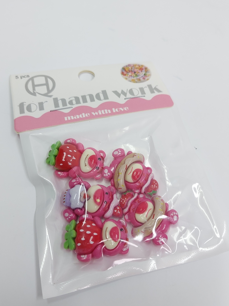 Dekoracija rankdarbiams "Meškučiai" rožinės sp. 5vnt.