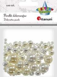 Dekoracija rankdarbiams Perlo karoliukai Įv.didžių 100vnt., balti, veriami TITANUM