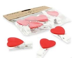Dekoracija rankdarbiams Segtukai mediniai balti su raudona širdele, 10vnt. D7 PENWORD