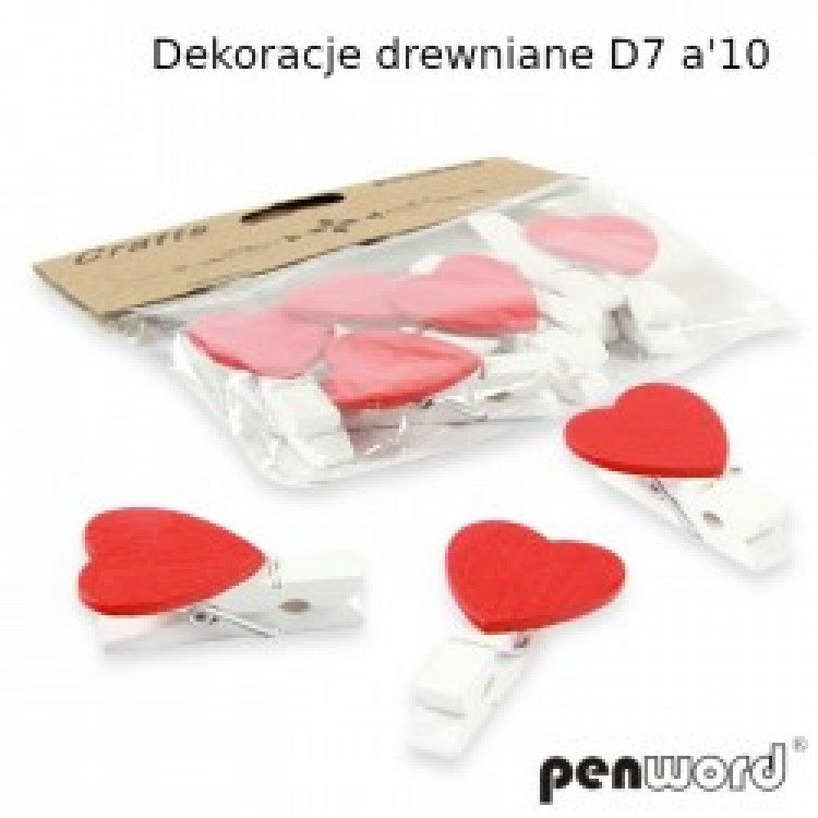 Dekoracija rankdarbiams Segtukai mediniai balti su rožine širdele, 10vnt. D8 PENWORD