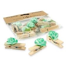 Dekoracija rankdarbiams Segtukai mediniai su žalsva gėlė, 10vnt. D11 PENWORD