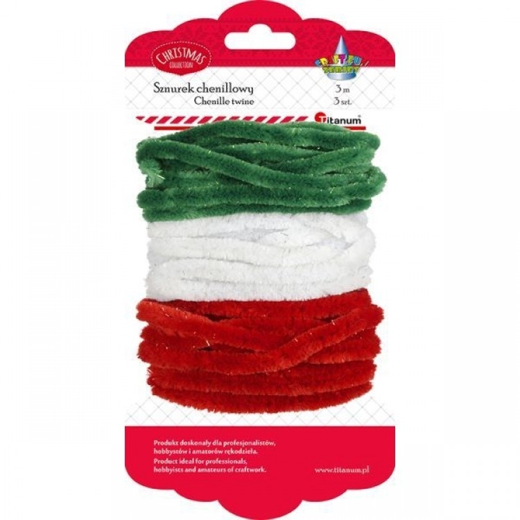 Dekoracija Šenilo juostelės žalios-baltos-raudonos 3vnt.3m. TITANUM