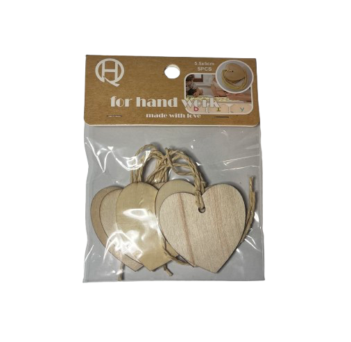 Dekoracija Širdutė medinė pakabinama 5,5x5cm (5vnt) – tai puikus pasirinkimas norint suteikti šilumos ir jaukumo bet kuriai erdvei. Šios medinės širdutės ne tik papuoš jūsų namus, bet ir gali tapti nuostabiu akcentu šventėms, vestuvėms ar kitoms ypatingoms progoms.