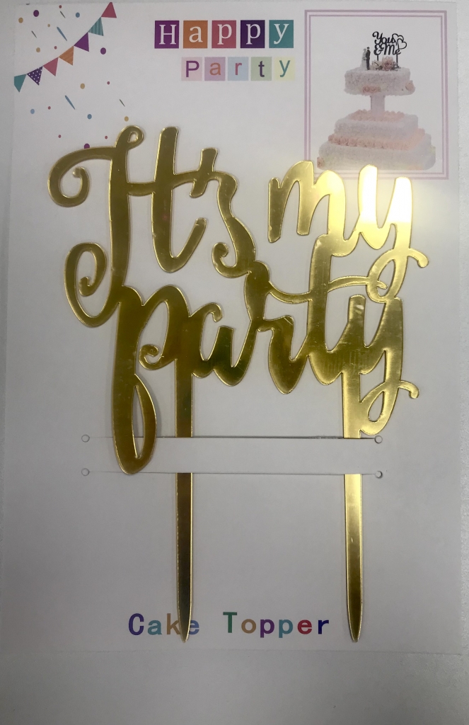 Dekoracija tortui "It's my party" ir "Happy Birthday", plastikinė, įv. spalvų