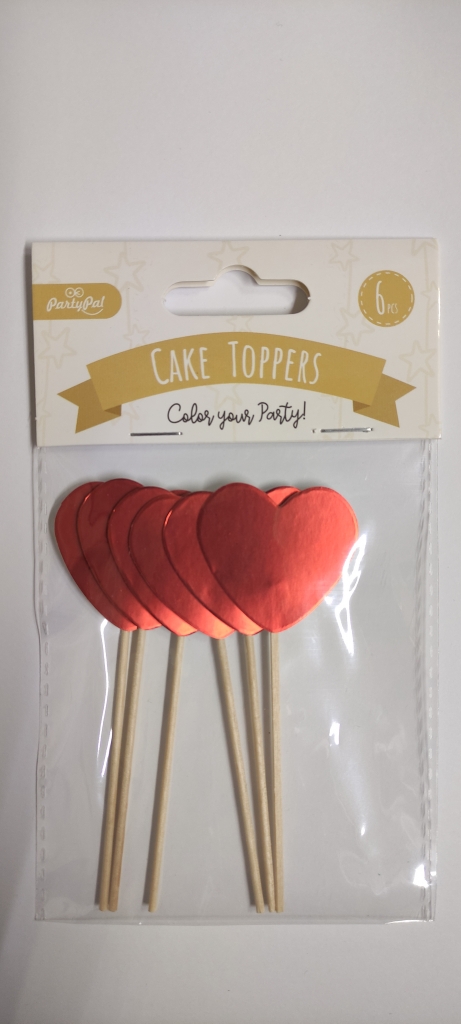 Dekoracija tortui, maistui - širdelės, raudonos spl., 6vnt.