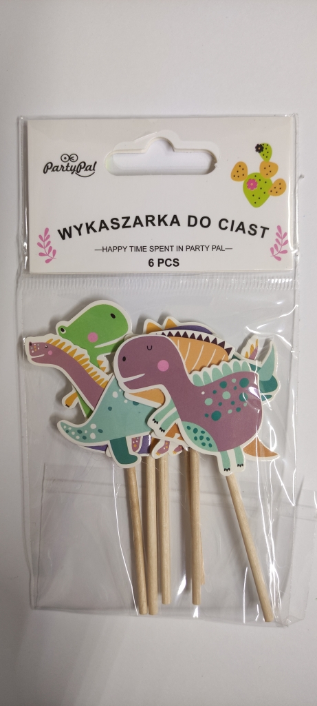 Dekoracija tortui/maistui - popieriniai dinozaurai, 6vnt.