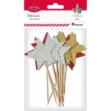 Dekoracija tortui/maistui - žvaigždės, raudona/aukso/sidabro spl.,18vnt.
