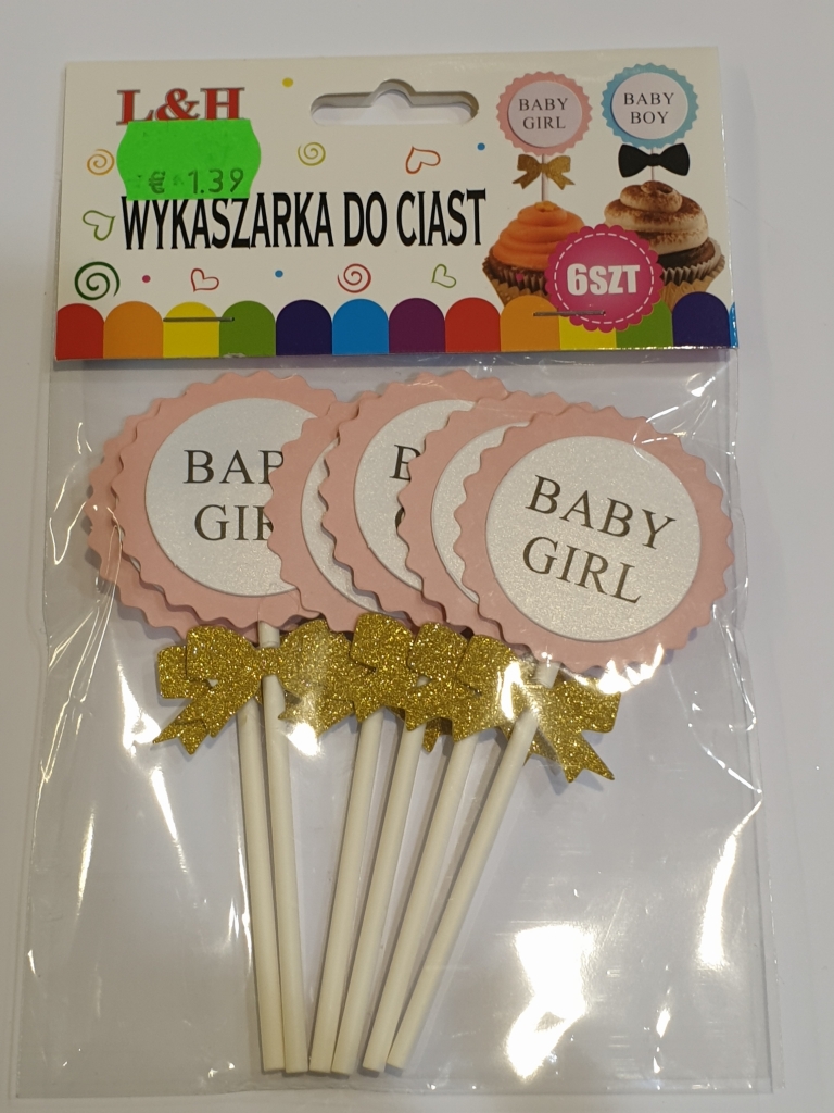 Dekoracija tortui/maistui "BABY BOY" ir "BABY GIRL", 6vnt.