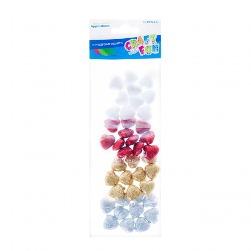 Dekoracijos iš polistirolio "Širdis" 10g 4 spalvų Craft-Fun