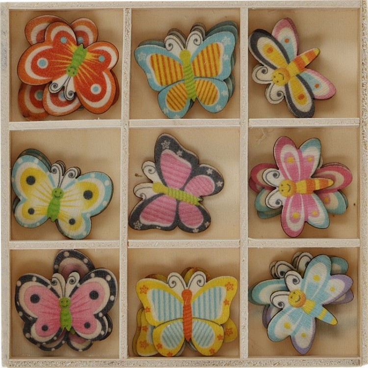 Dekoracijos medinės dėž. „Drugeliai” 27vnt. TITANUM