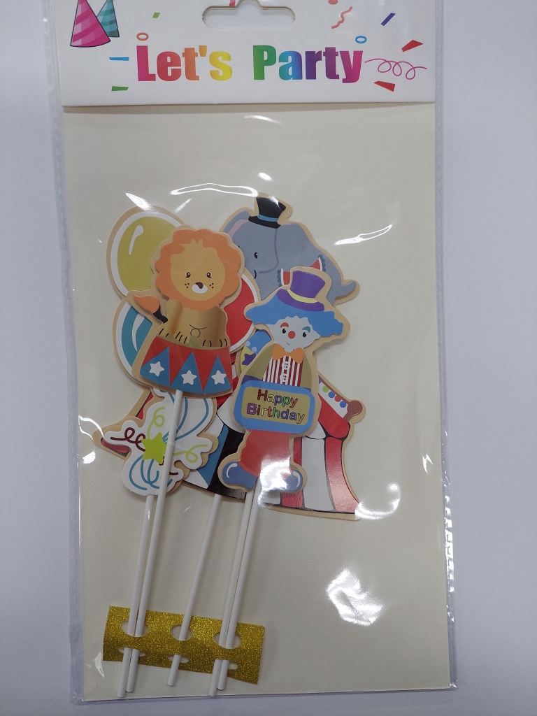 Dekoracijų rinkinys tortui "Happy Birthday", cirkas, poperinis, 5vnt.