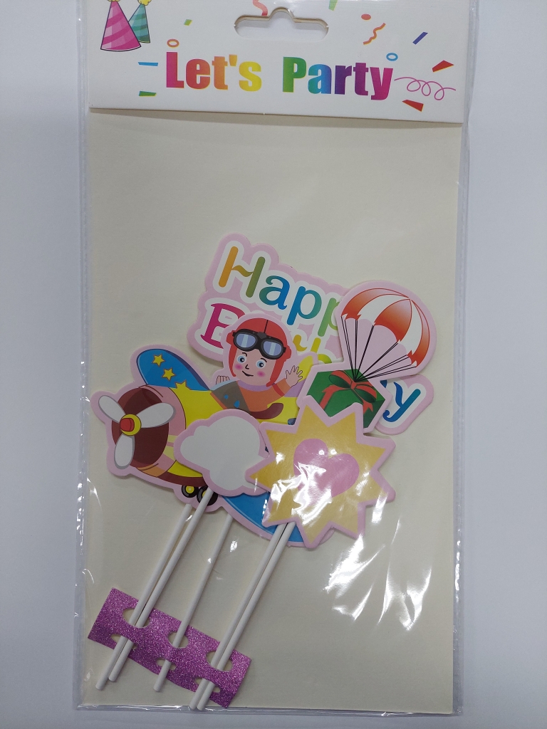 Dekoracijų rinkinys tortui "Happy Birthday", lakūnas, popierinis, 5vnt.