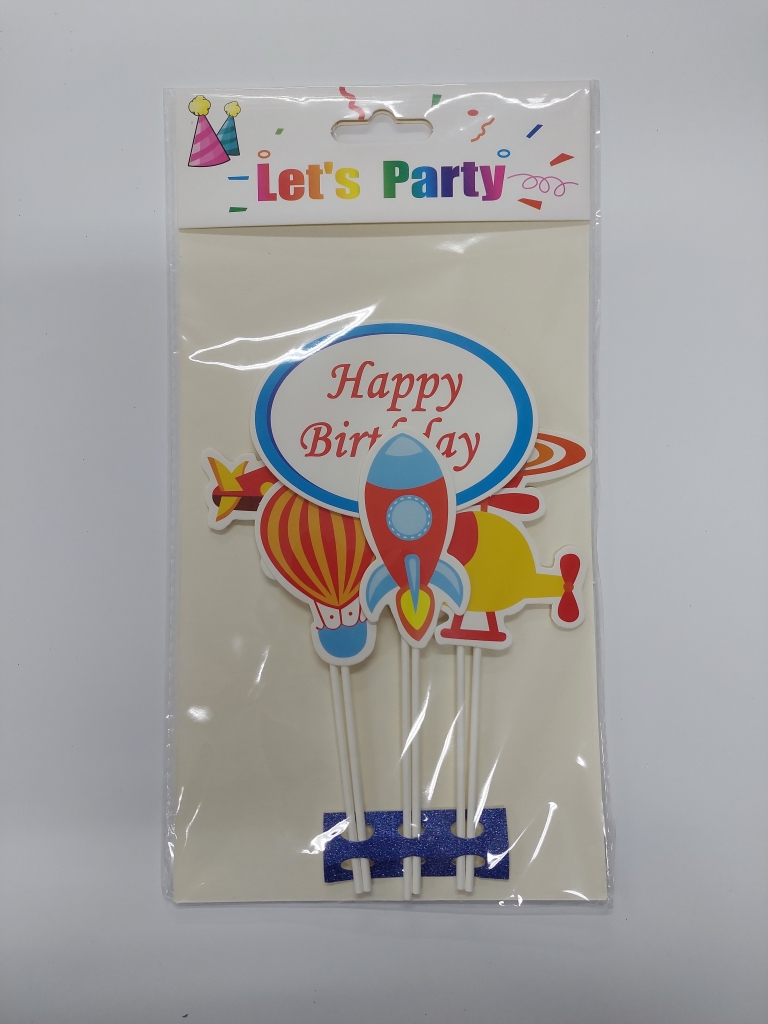 Dekoracijų rinkinys tortui "Happy Birthday", popierinis, 6vnt.