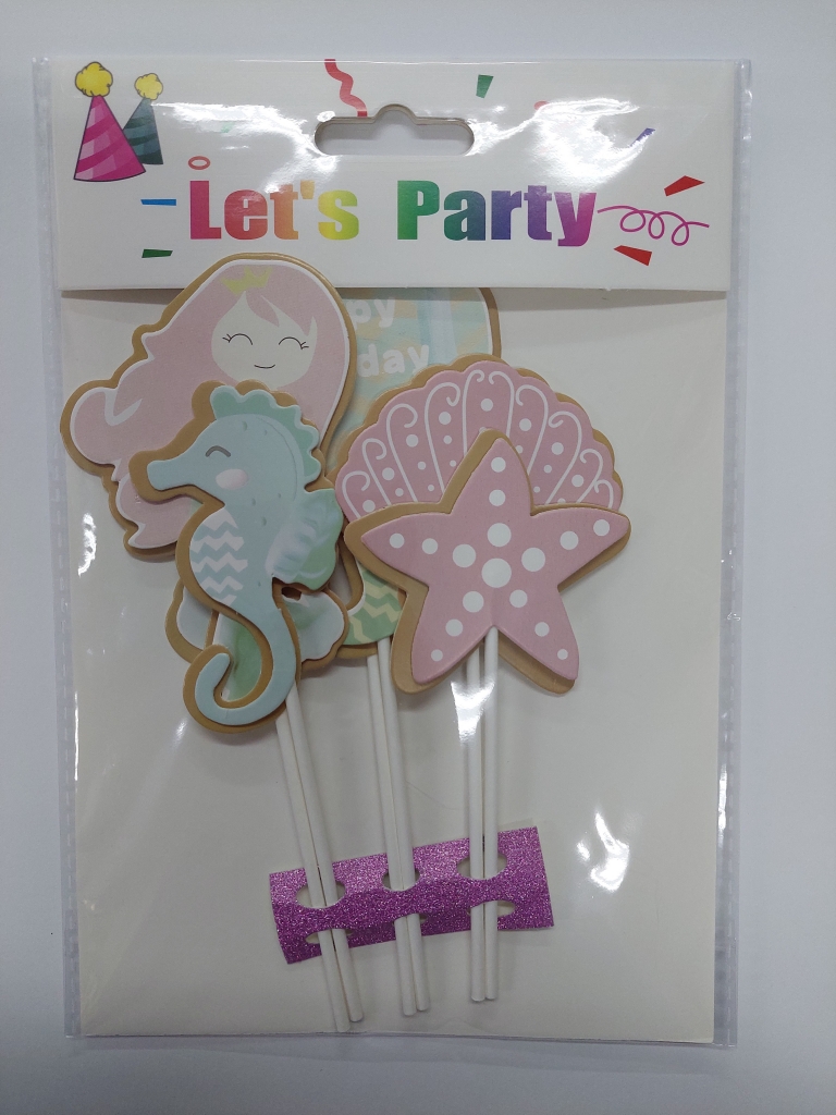 Dekoracijų rinkinys tortui "Happy Birthday"/jūros pasaulis, popierinis, 6vnt.
