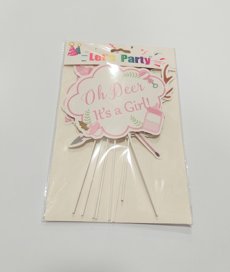 Dekoracijų rinkinys tortui "Oh Deer It's a Girl", kūdikio sutiktuvėms, 8vnt.
