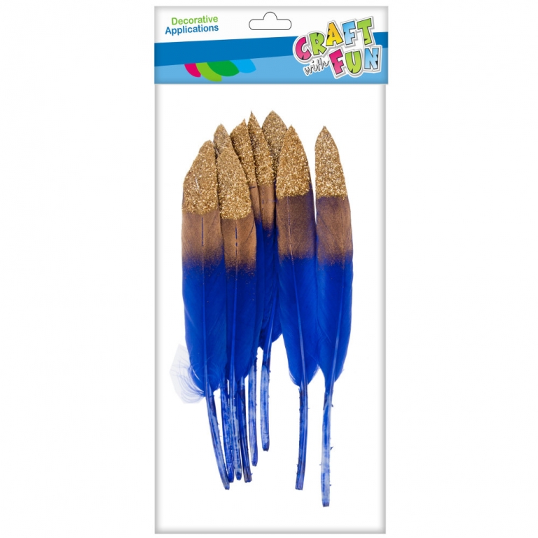 Dekorativinės mėlynos plunksnos su auksiniais galiukais, 8vnt. CRAFT-FUN