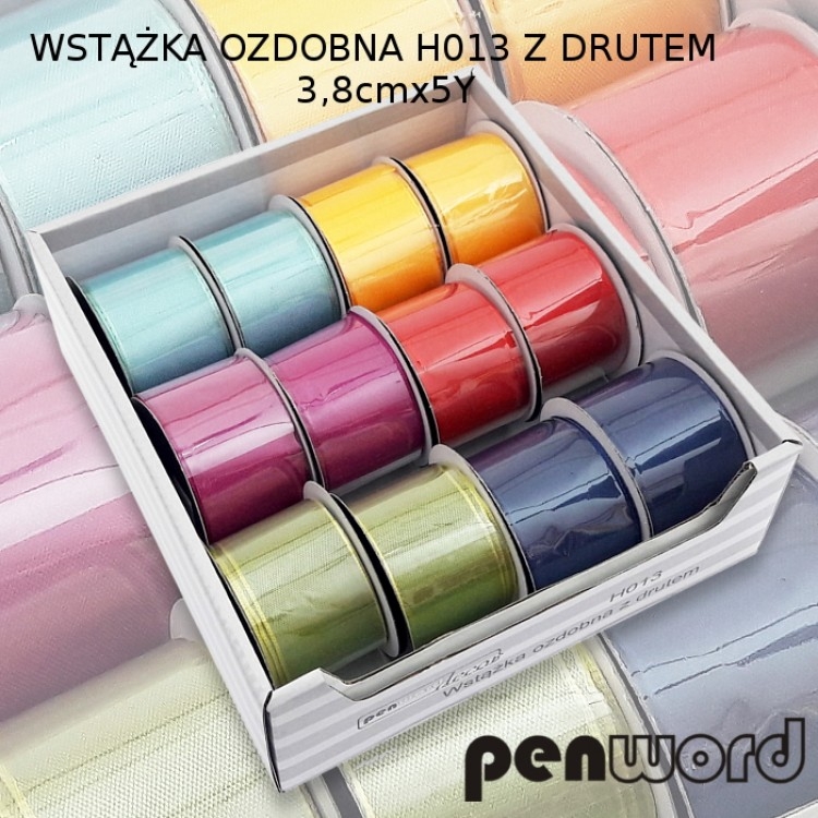 Dekoratyvinė atlasinė juostelė 38mm 5Y Nr.H013 PENWORD, įvairių spalvų
