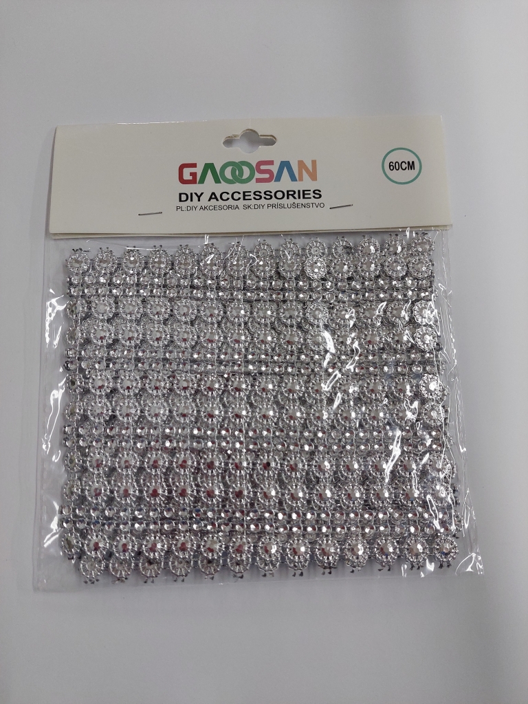 Dekoratyvinė karoliukų-gėlyčių juosta 60cm. sidabrinės sp.