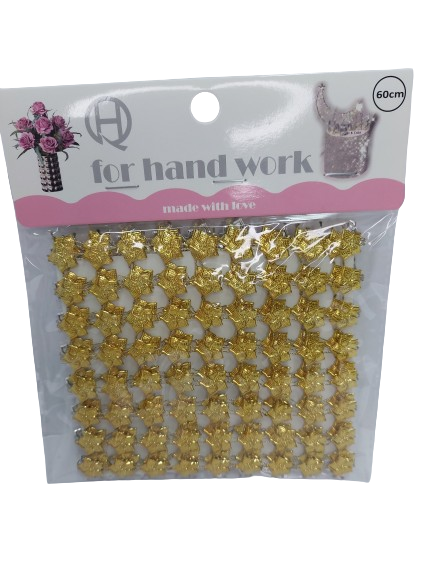 Dekoratyvinė karoliukų juosta gėlės aukso sp.60cm