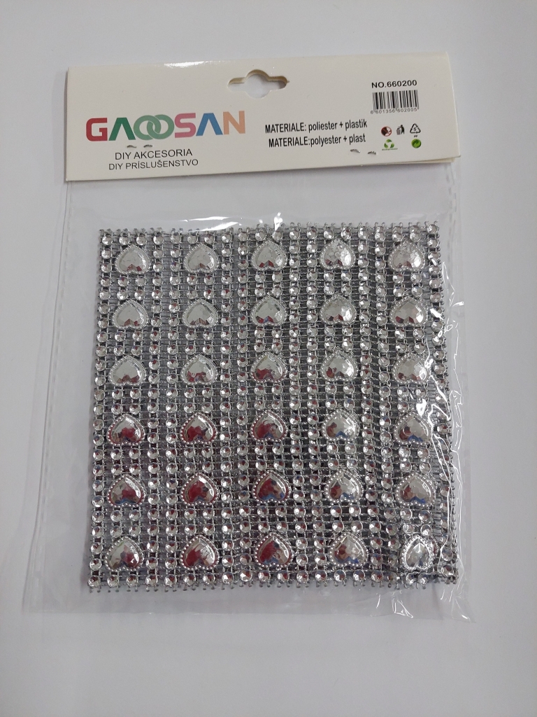 Dekoratyvinė karoliukų juosta su sirdelėmis sidabrinės sp. 30 cm.