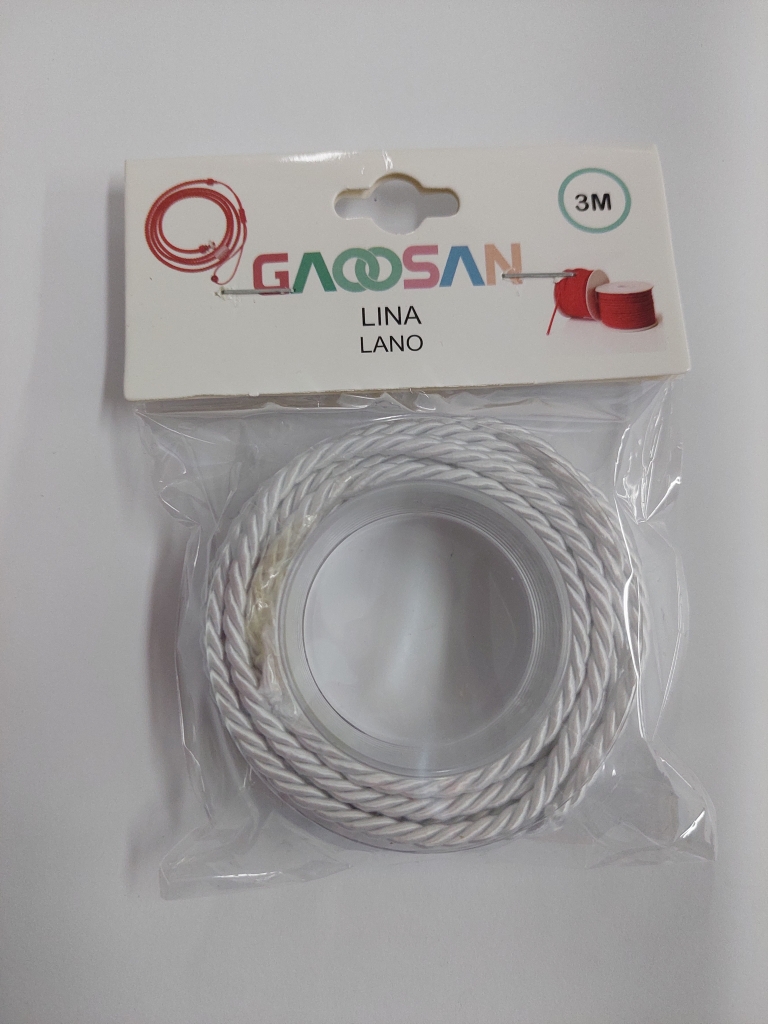 Dekoratyvinė virvelė, pinta, raudona, balta spalva 3m. LINA-LIU