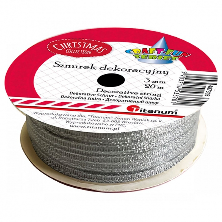 Dekoratyvinė virvutė 20/3mm sidabrinė TITANUM