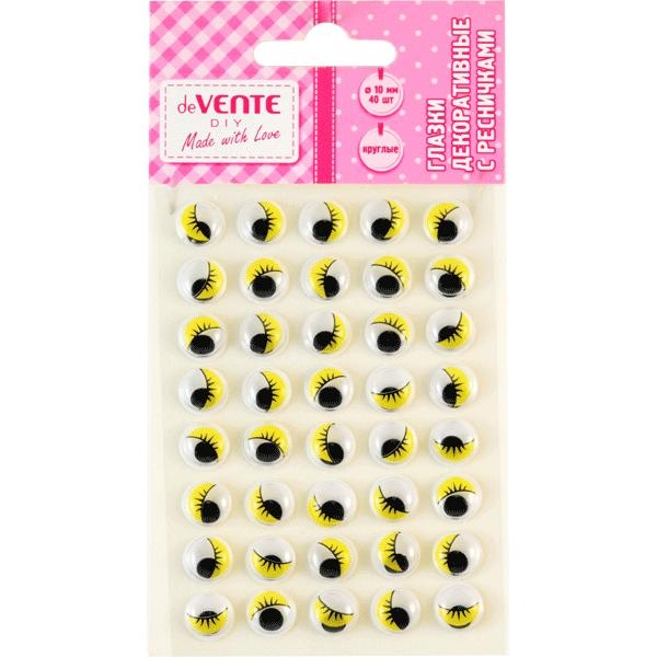 Dekoratyvinės akys deVENTE, 40 vnt, apvalios 10mm, geltonos spalvos