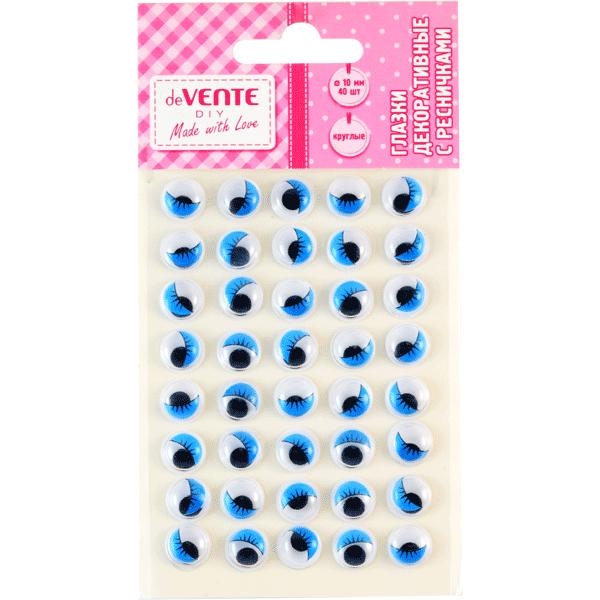 Dekoratyvinės akys deVENTE, 40 vnt, apvalios 10mm, mėlynos spalvos