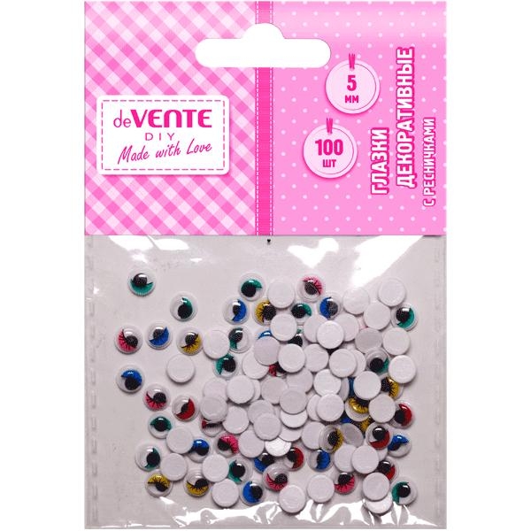 Dekoratyvinės akys deVENTE su blakstienomis, 6 mm, lipnios, 100vnt