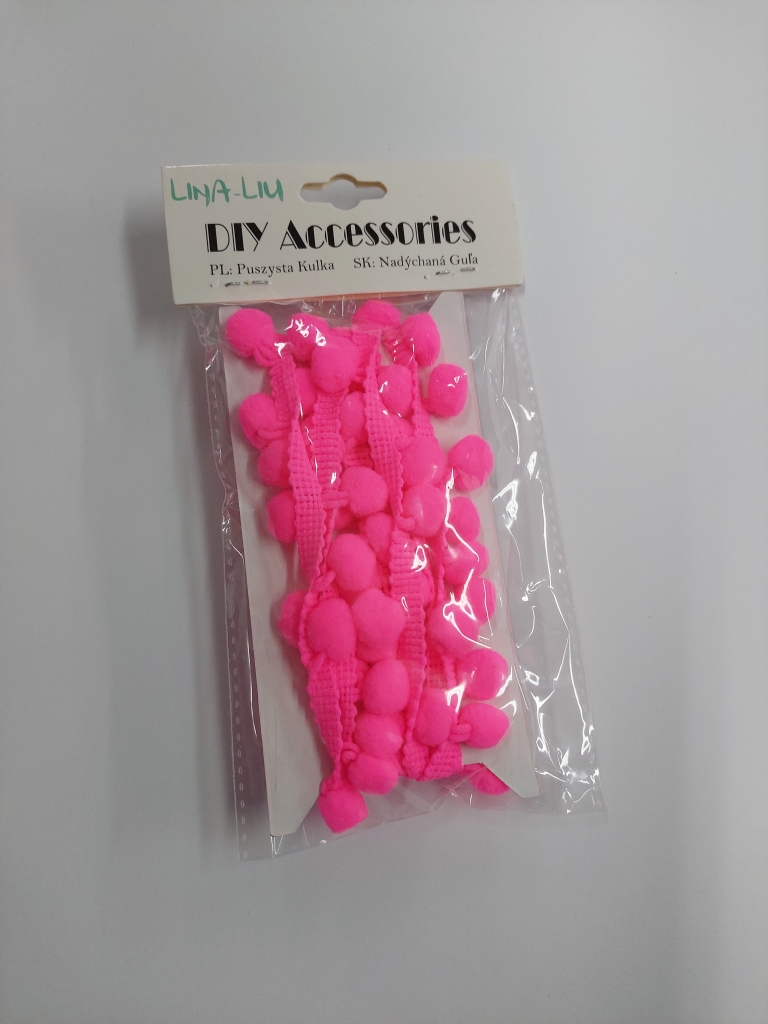 Dekoratyvinės juostelė su bumbulais ryškiai rožinės sp.