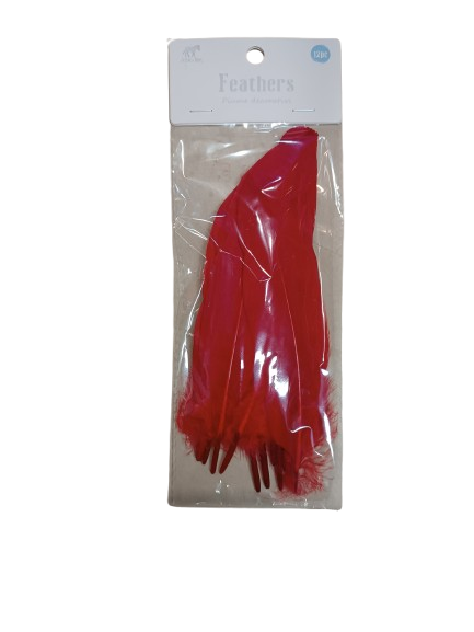 Dekoratyvinės plunksnos 12 vnt raudonos sp. 17cm