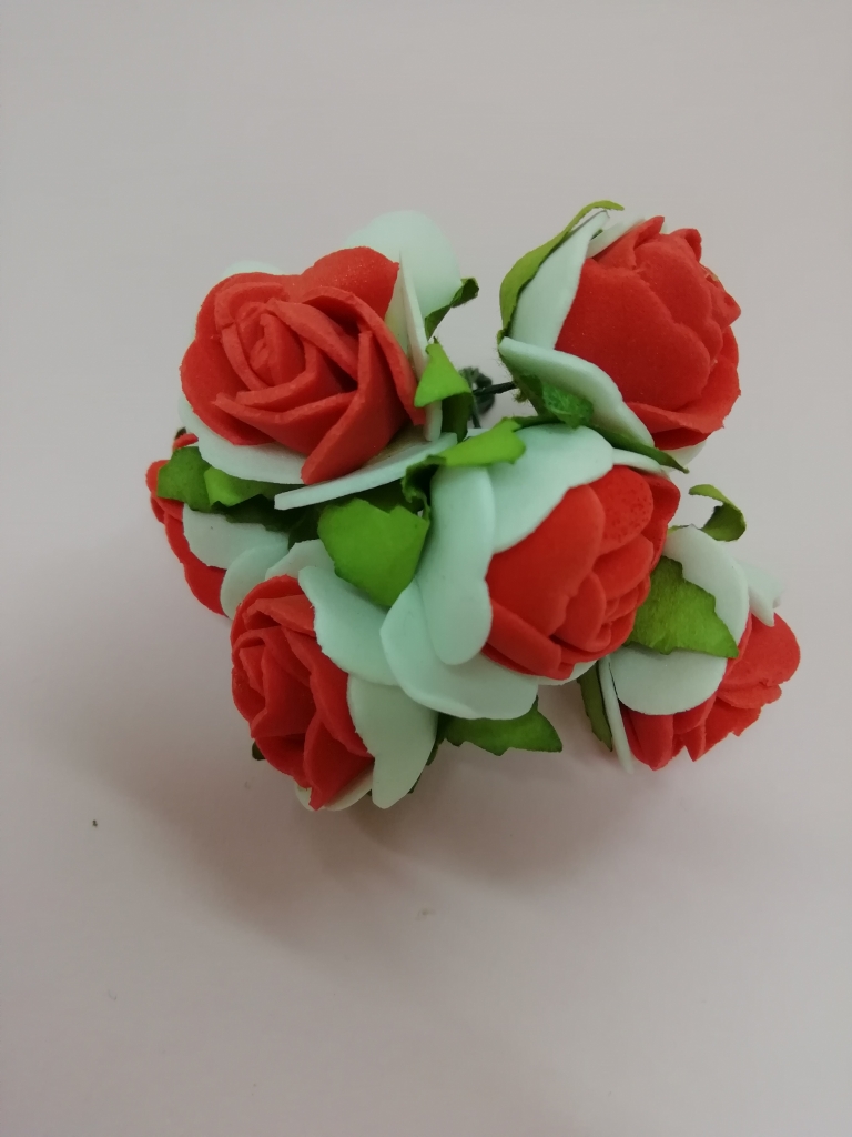 Dekoratyvinės rožytės 6vnt. raudos-baltos spalvos