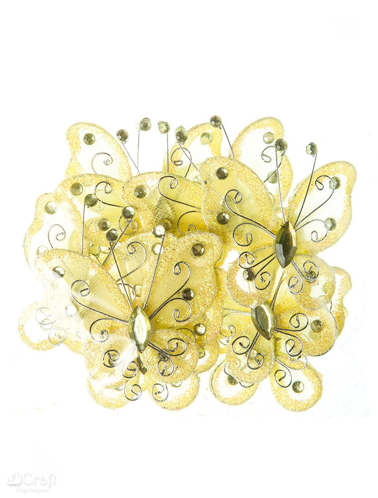 Dekoratyviniai drugeliai 5 cm, 10 vnt., geltoni