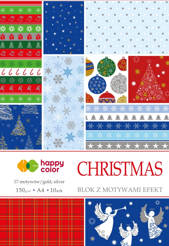 Dekoratyvinio popieriaus albumas A4 10l. 150gm2 Christmas 17 motyvų, metaliz., Happy Color