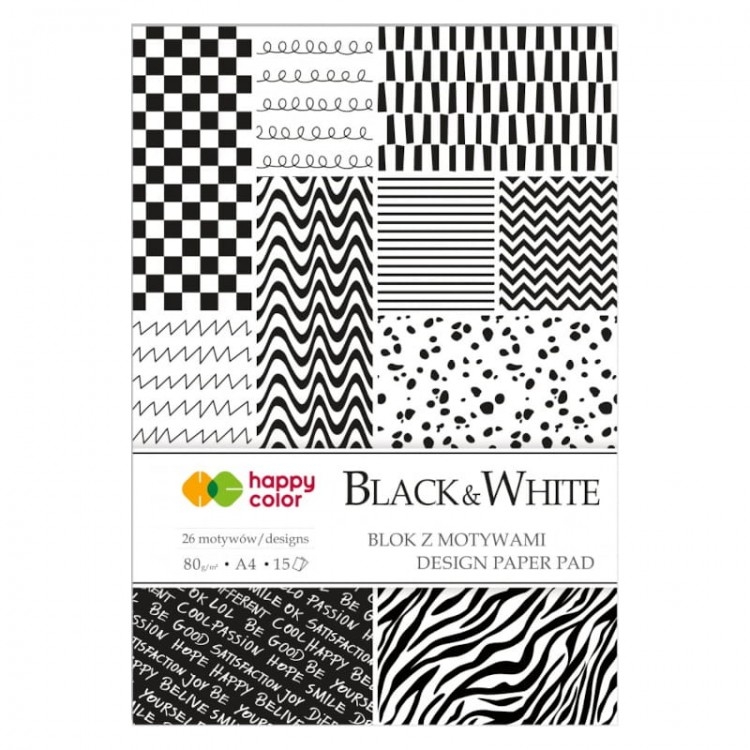 Dekoratyvinio popieriaus albumas A4, 15l. 80g Black&White Happy Color