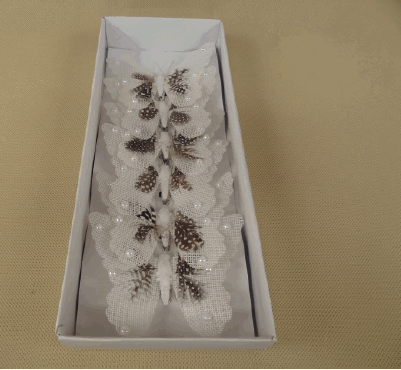 Dekoratyvinis drugelis 12cm baltas su juodu