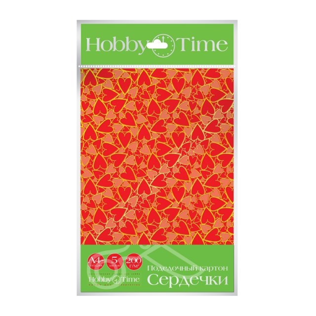 Dekoratyvinis kartonas HobbyTime, A4, 5 lapai, širdelės