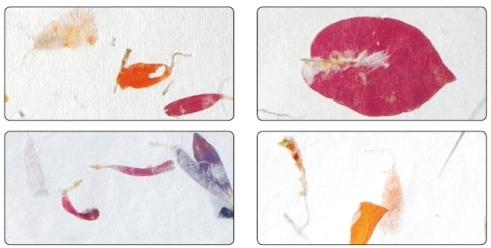 Dekoratyvinio popieriaus rinkinys su įspaustomis natūraliomis džiovintomis gėlėmis.