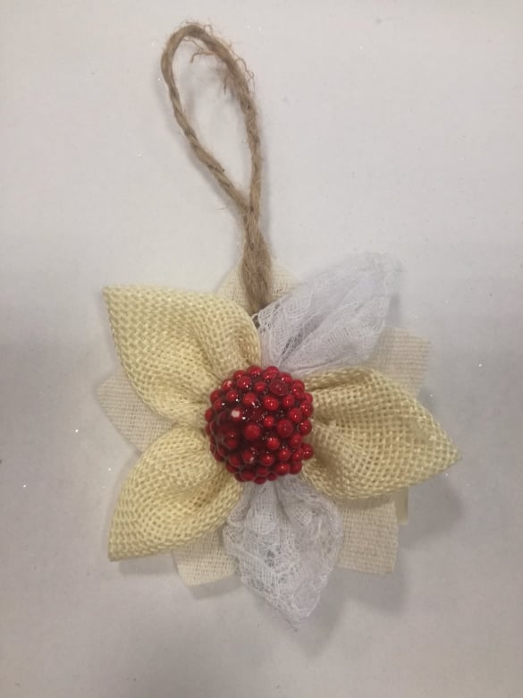 Dekorotyvinė Gėlytė, baltos spalvos tinka eglės papuošimui arba kitai dekoracijai.
